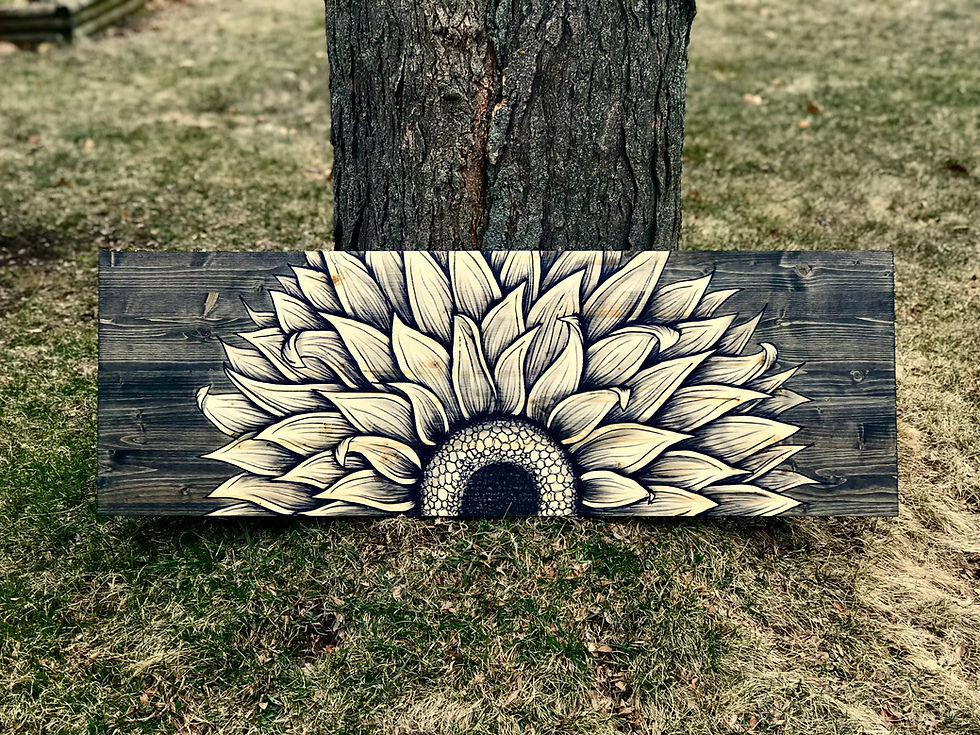 Sunflower, Stem and Leaves- Wall hanging, Tray or Lazy Susan